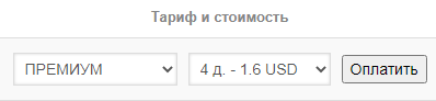 - Тариф «ПРЕМИУМ» 0.4 usd в сутки